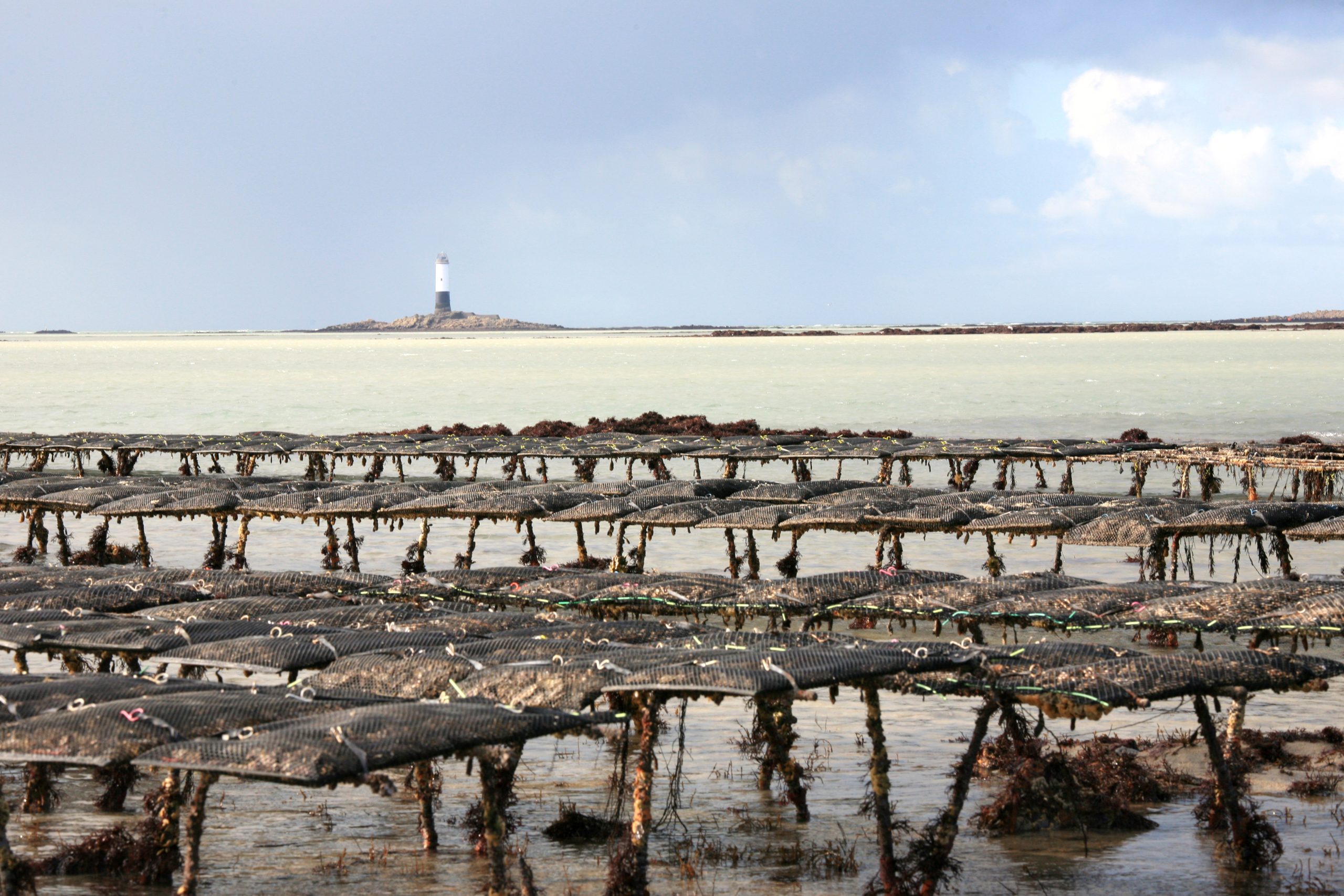 Notre exploitation compte 10Ha d’huîtres et 1,5km de moules de bouchots, le tout élevé en pleine mer dans des conditions propice au développement de l’écosystème local.